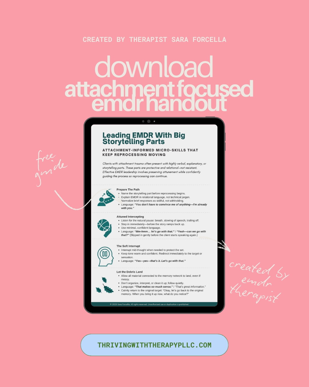 Download your free EMDR handout now and discover attachment-informed strategies for working with storytelling or stuck parts. Fill out the form below to get your copy and start applying these tools in session!